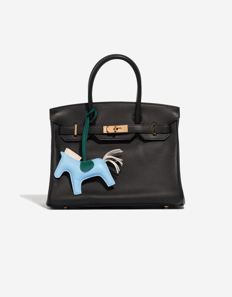 By far the most popular of Hermès charms, the Rodeo horse is a nod to the fashion house’s equestrian origins. It comes in three different sizes: PM, measuring 9.7 x 7.8cm; MM, measuring 12.7 x 10.5cm, and GM, measuring 13.5 x 11.1cm. As you might expect, it’s best to match the size of your Rodeo to the size of your bag – for example, smaller Kellys and Birkins measuring 28cm and below will best suit a PM charm.