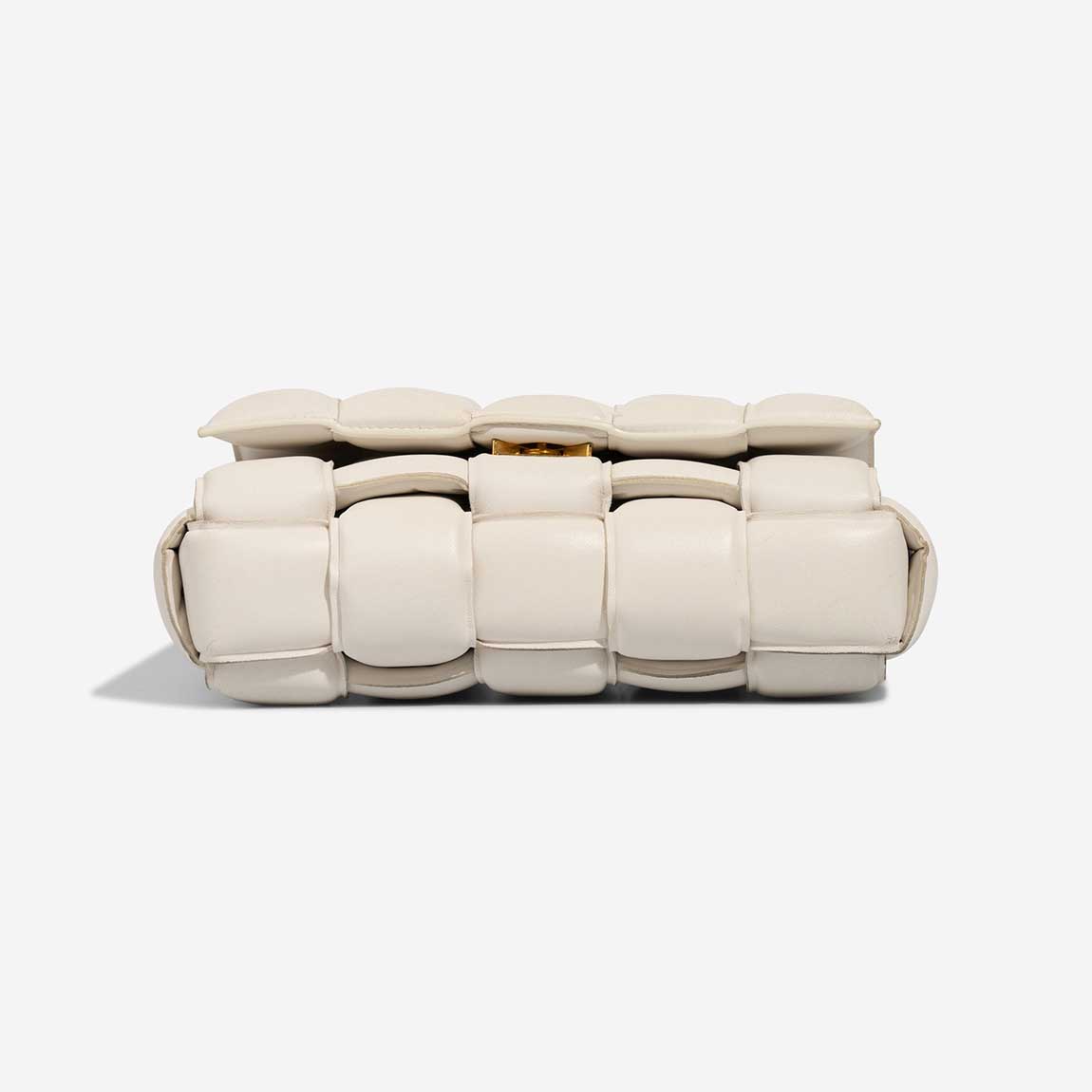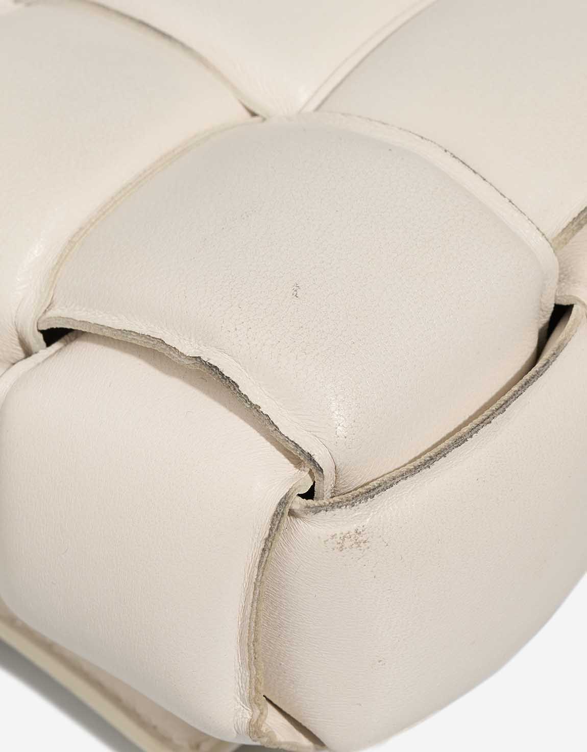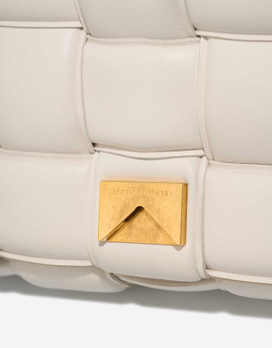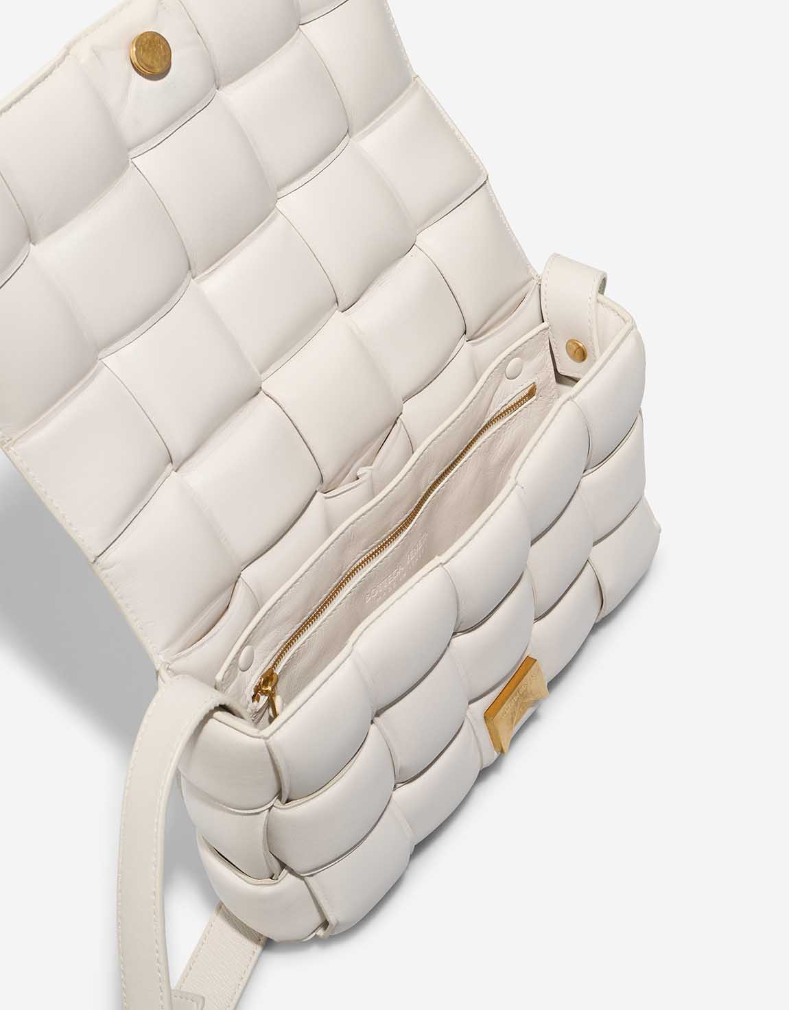 This Bottega Veneta Cassette is crafted from supple lambskin in crisp white, showcasing the label’s signature Intrecciato weave. Finished with gold-tone hardware, its bold geometry makes a statement in any wardrobe. A sleek yet practical design, ideal for modern dressing, it arrives in very good pre-loved condition, made in 2022.