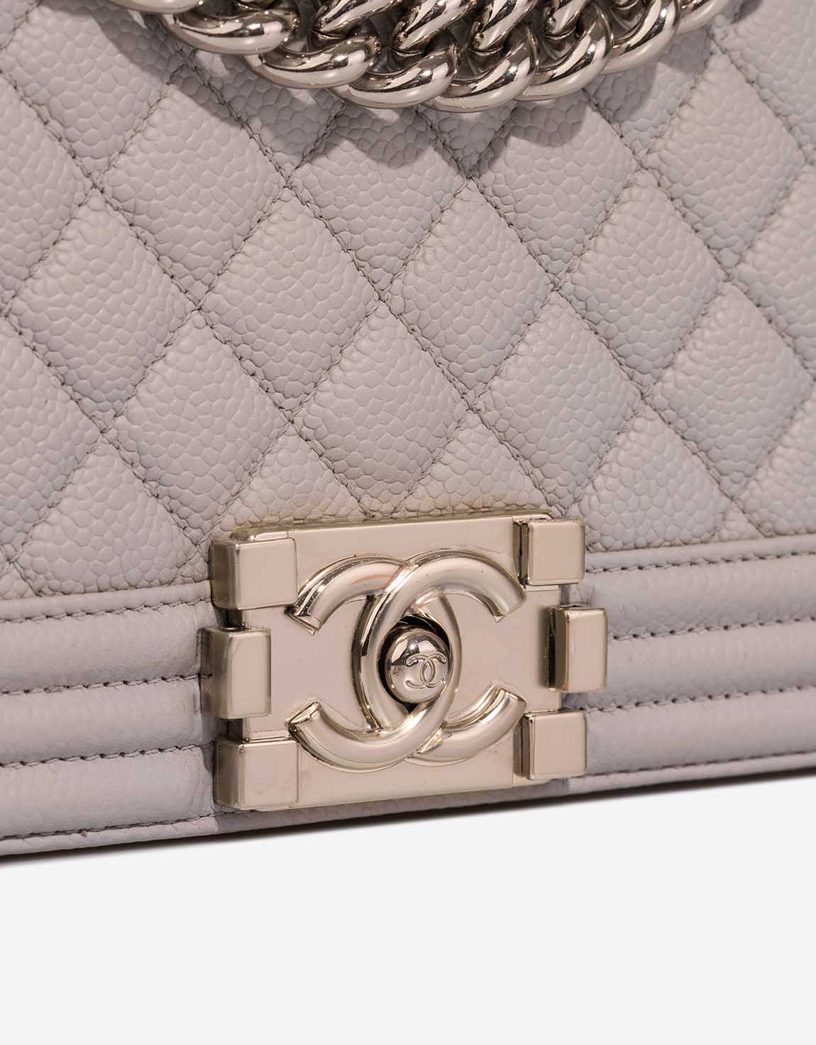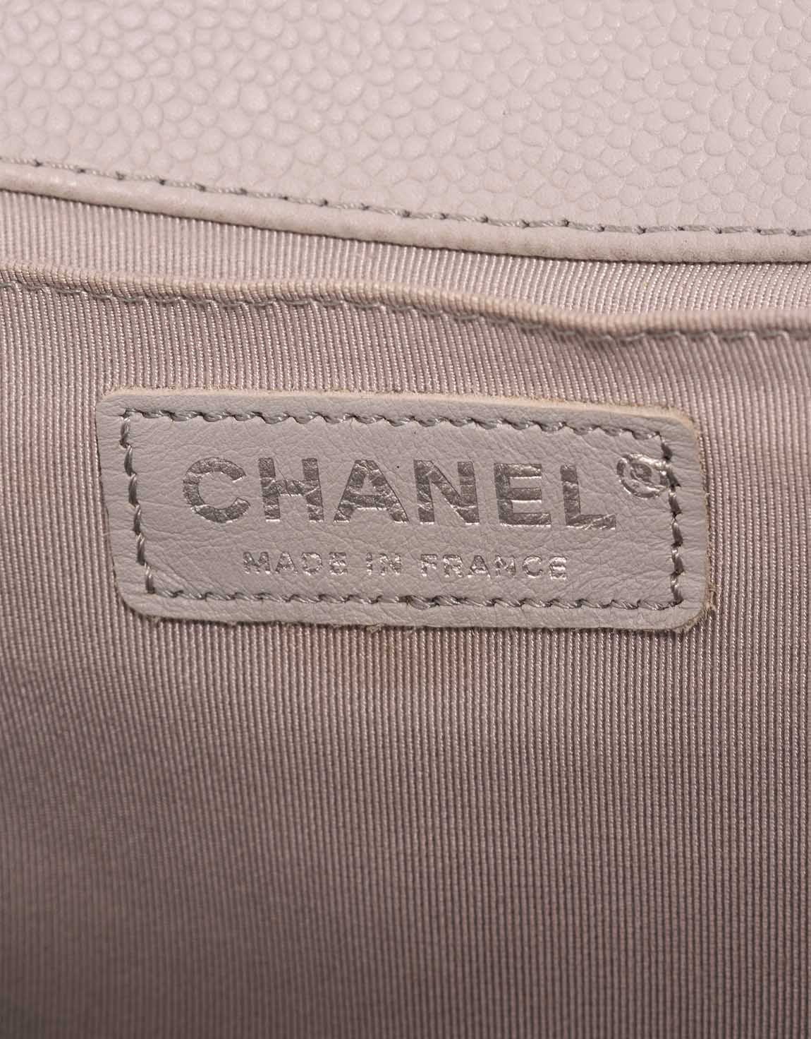 This Chanel Boy Old Medium is rendered in durable light grey Caviar leather — a neutral tone that enhances the bag’s modern edge. Accented with silver-tone hardware and the bold Boy clasp, this piece transitions seamlessly from day to evening. Crafted between 2012–2013, the bag arrives in excellent pre-loved condition.