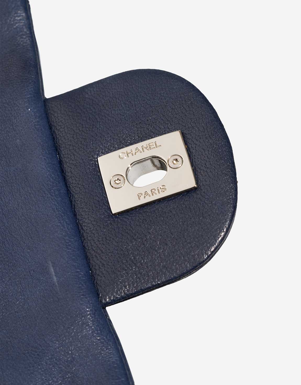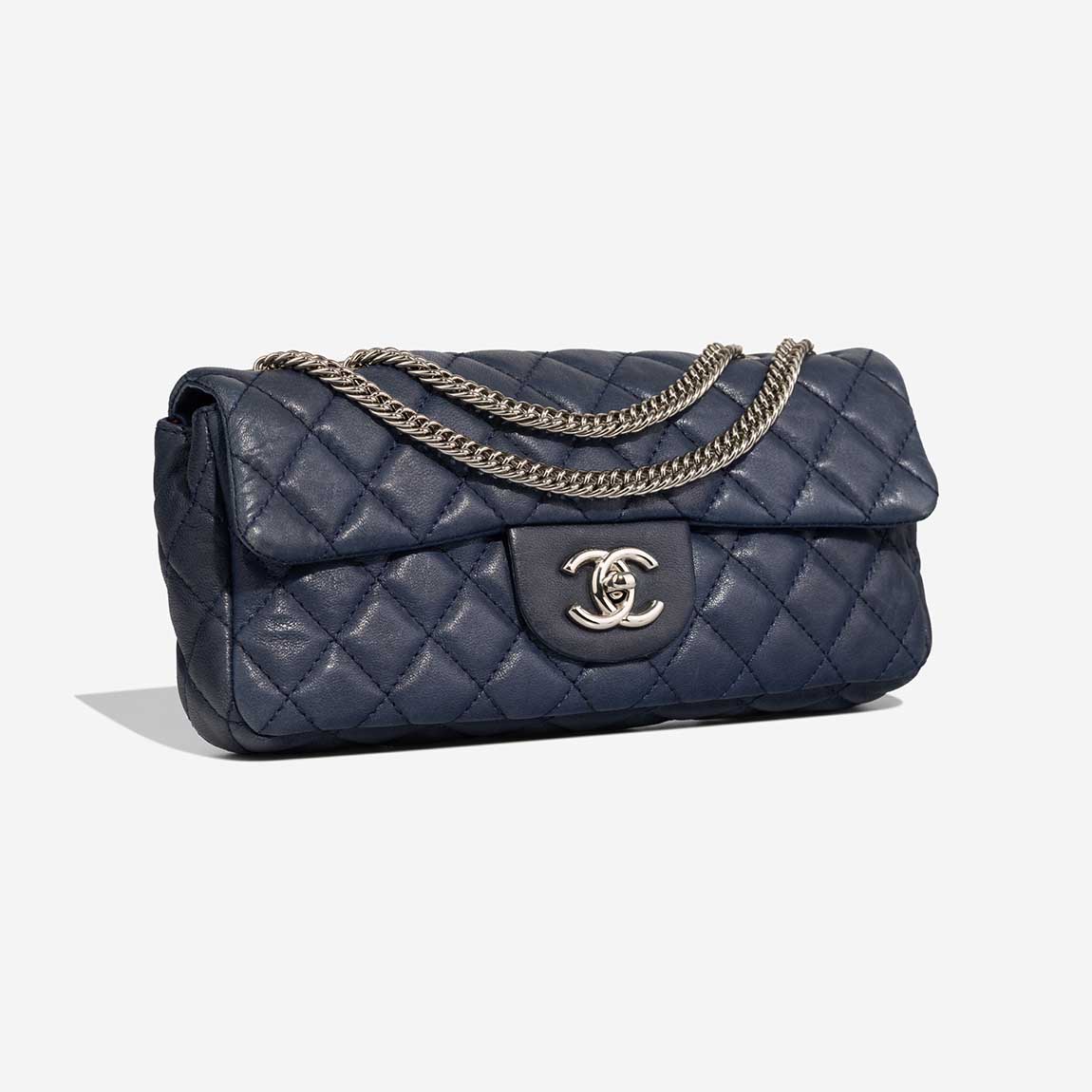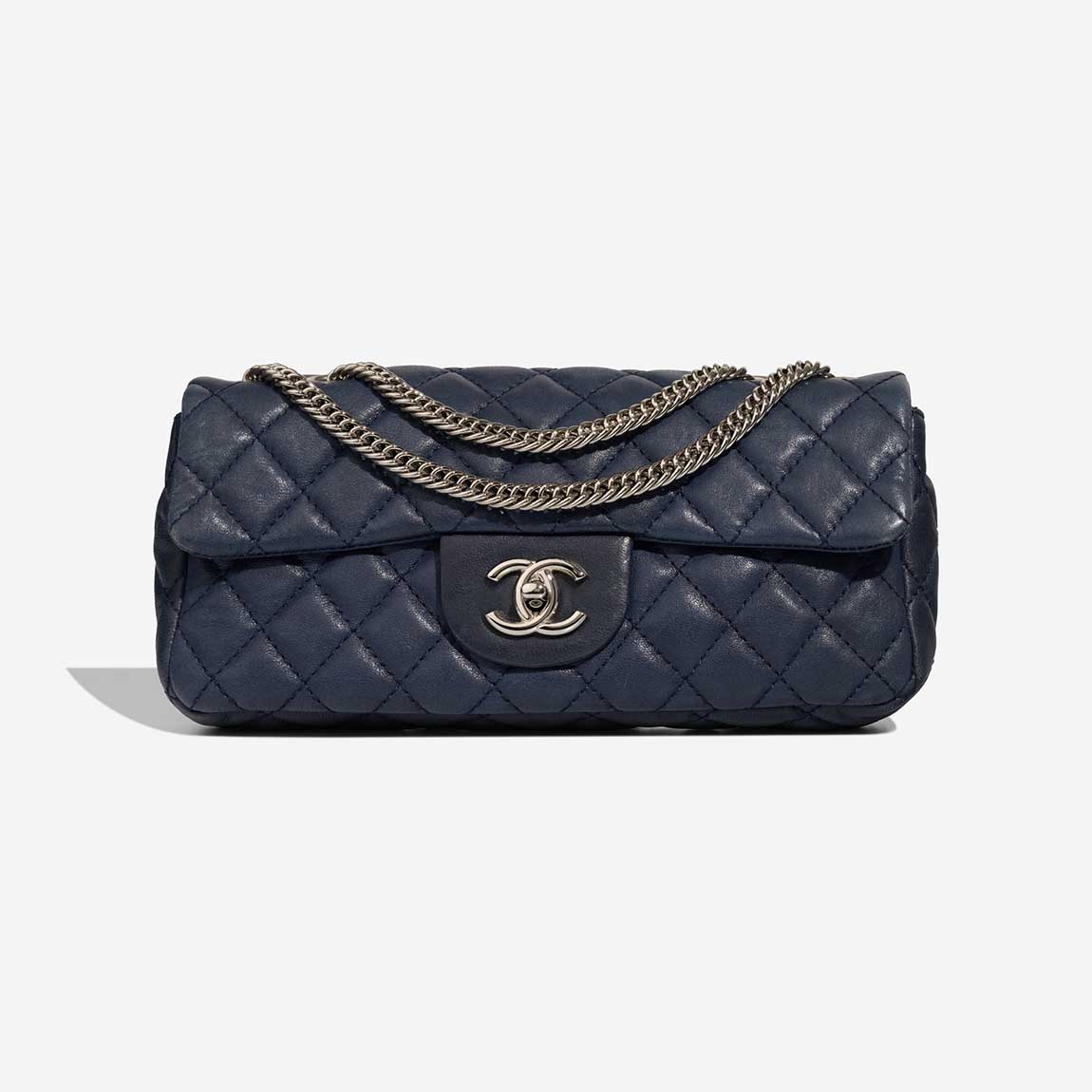 Crafted in dark blue lambskin, this Chanel Timeless Baguette Small is a sleek and compact accessory. Silver-tone hardware highlights the minimalist shape. Produced between 2008 and 2009, the bag arrives in good pre-loved condition.