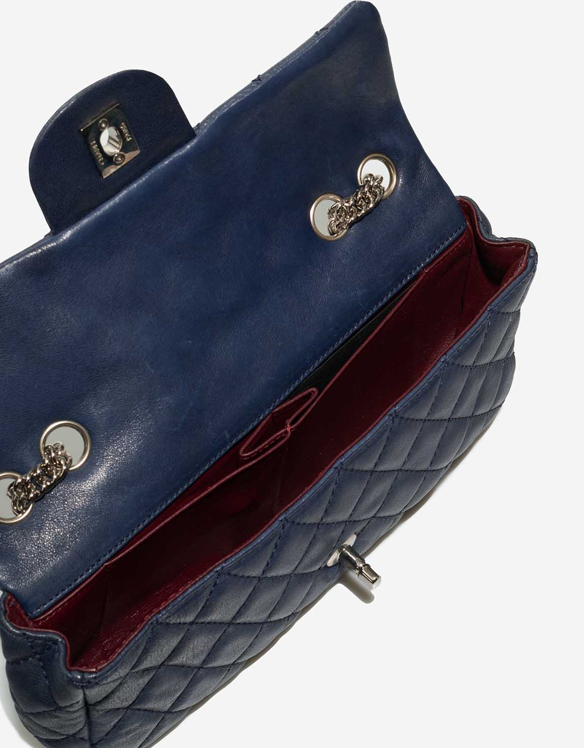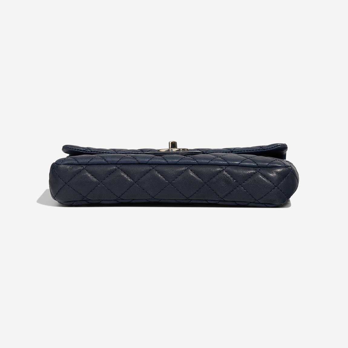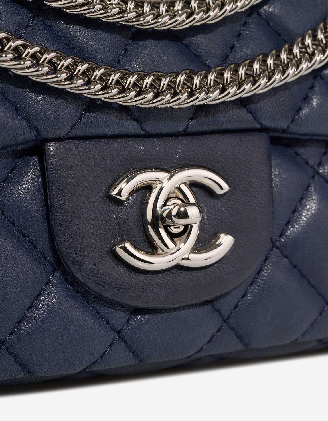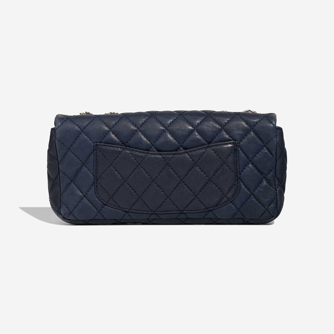 Crafted in dark blue lambskin, this Chanel Timeless Baguette Small is a sleek and compact accessory. Silver-tone hardware highlights the minimalist shape. Produced between 2008 and 2009, the bag arrives in good pre-loved condition.