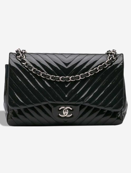The patent leather remains in good condition with only minimal signs of wear overall on the bag.