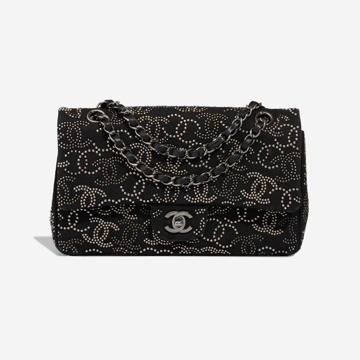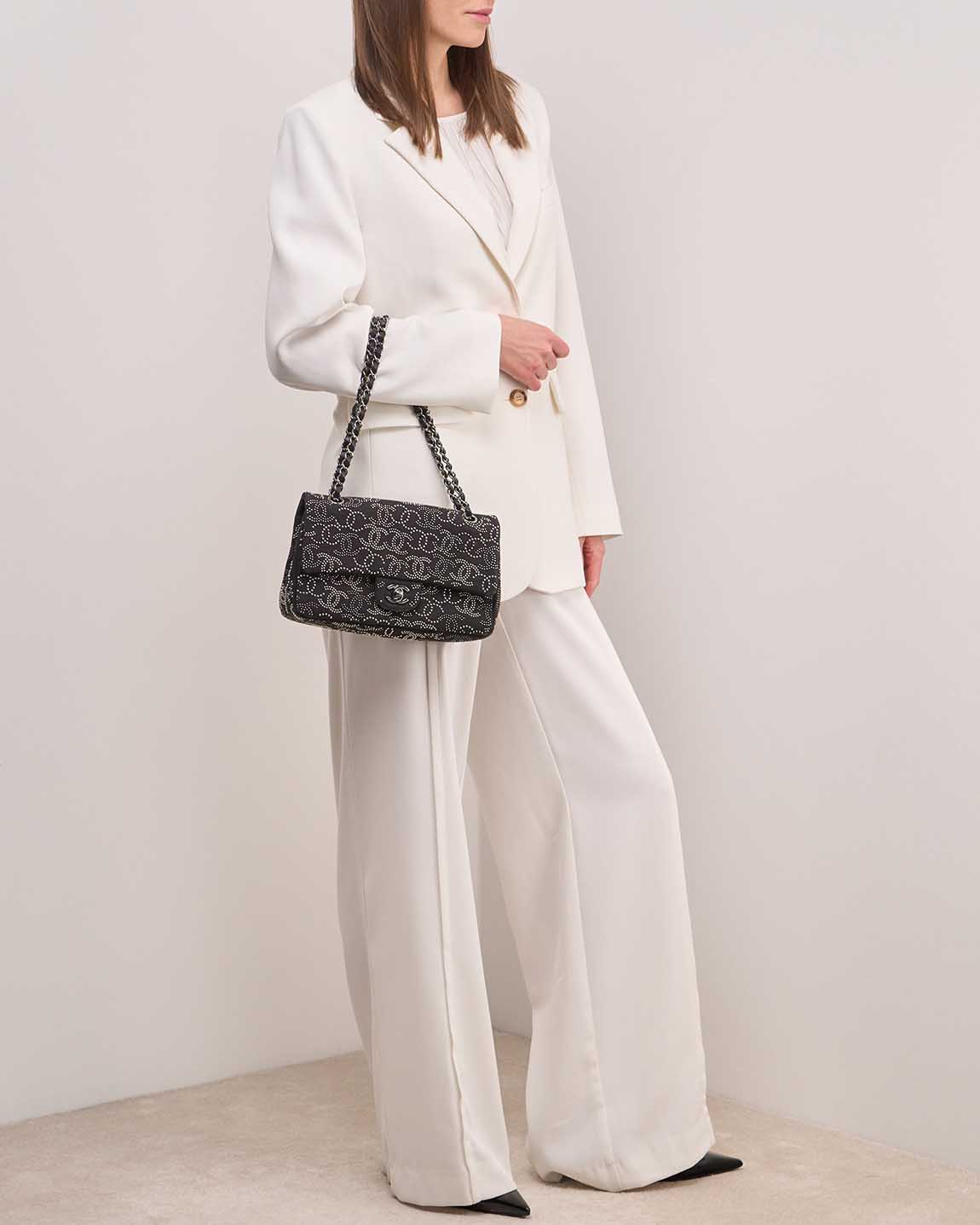 A refined take on an icon, this Chanel Timeless Medium bag is rendered in black canvas and accented with silver-tone hardware. The flap is punctuated by the house’s distinctive CC stud detailing — a bold update to the classic silhouette. A coveted collector’s piece from 2018–2019, the bag arrives in very good pre-loved condition.