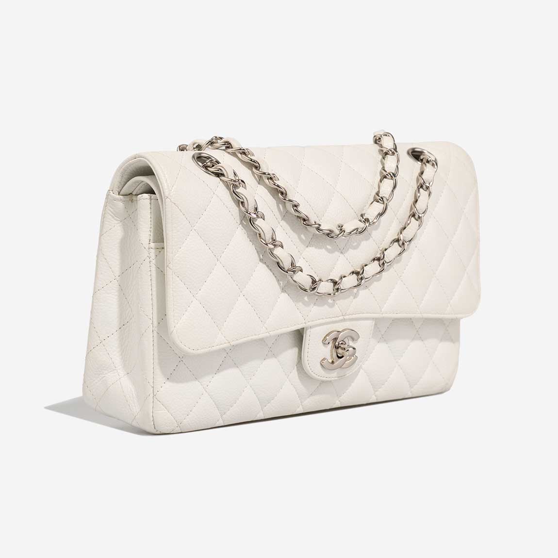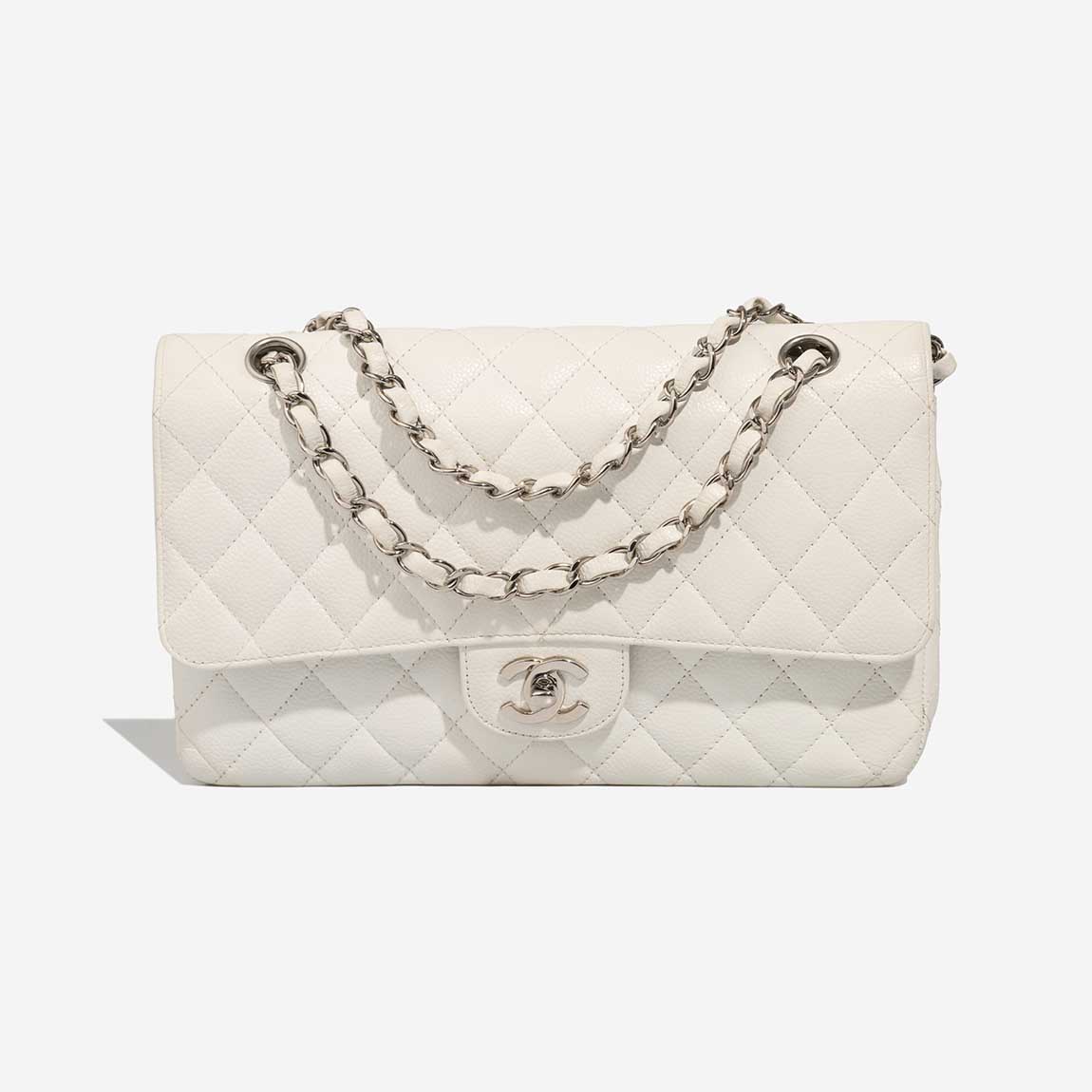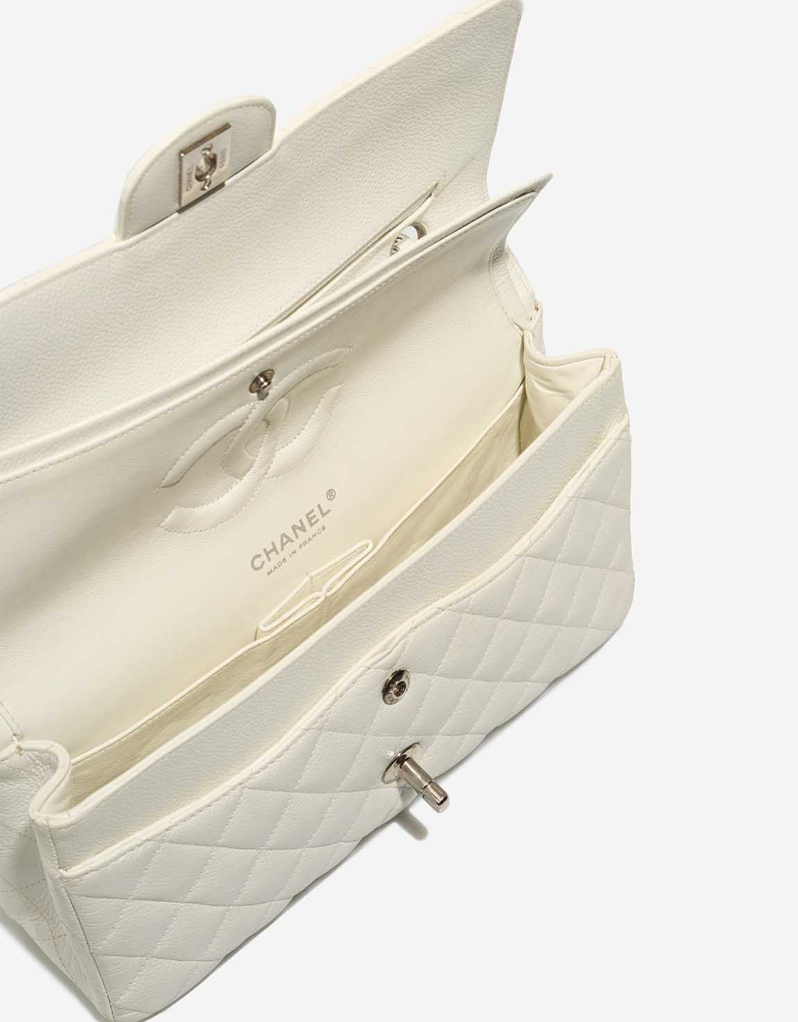 Elegant and luminous, this Chanel Timeless Medium is crafted from white Caviar leather — a textured calfskin prized for its resilience. Accented with silver-tone hardware and the iconic CC clasp, it offers a refined contrast that elevates both tailored and occasion dressing. Produced between 2008 and 2009, this vintage Chanel classic remains ever relevant. The bag arrives in excellent pre-loved condition.
