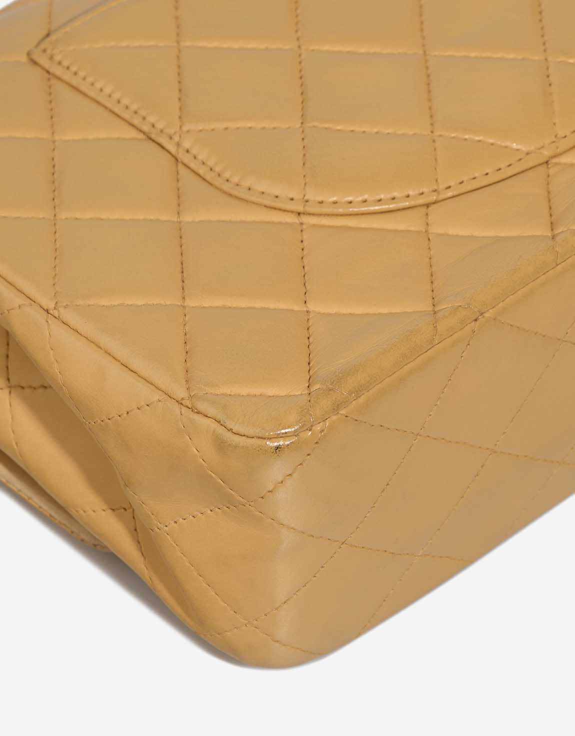 Overall wear on the leather, mainly inside. Scratches and wear on the hardware, a stain and pressure marks under the flap.