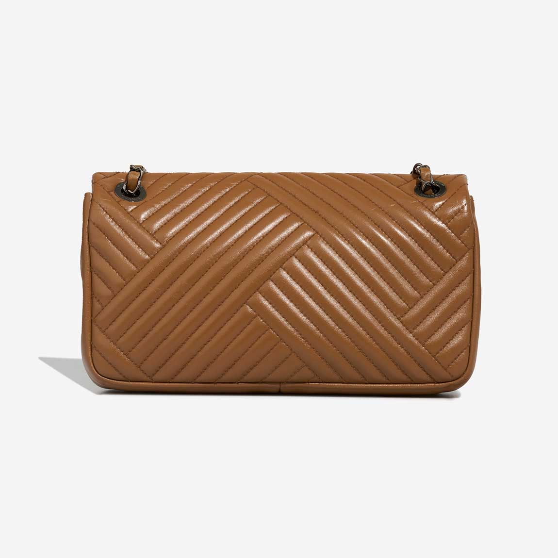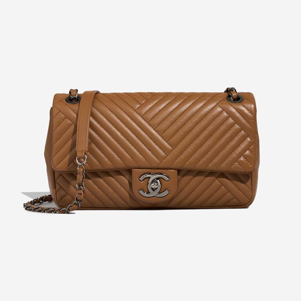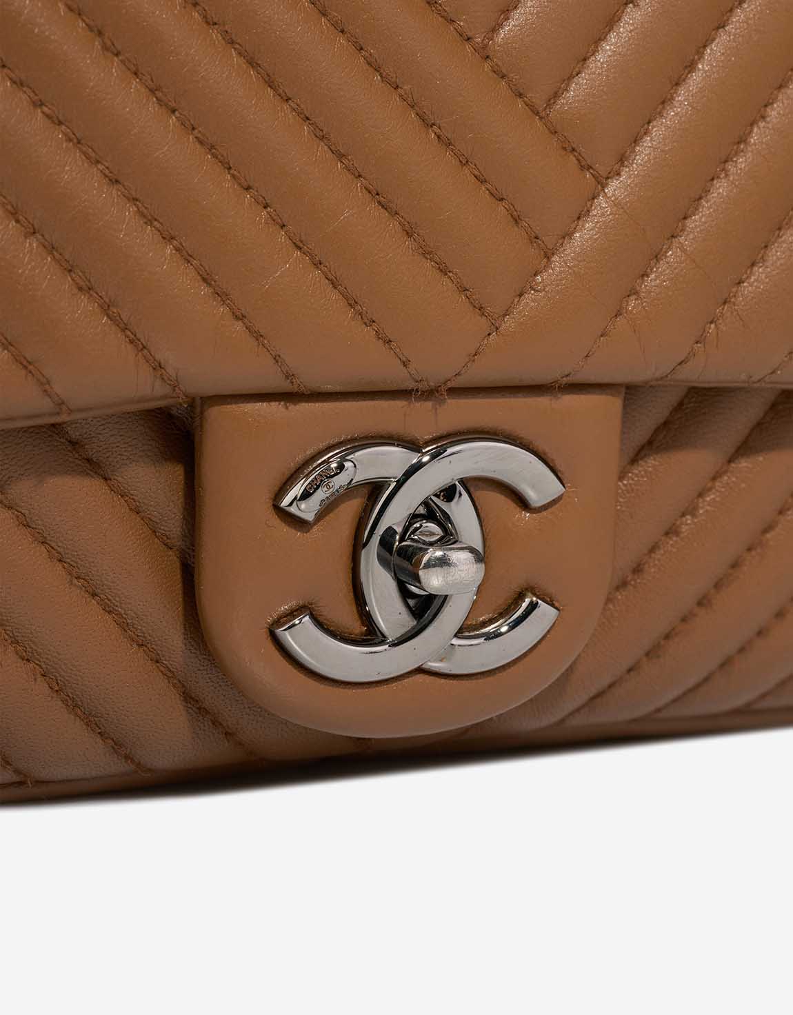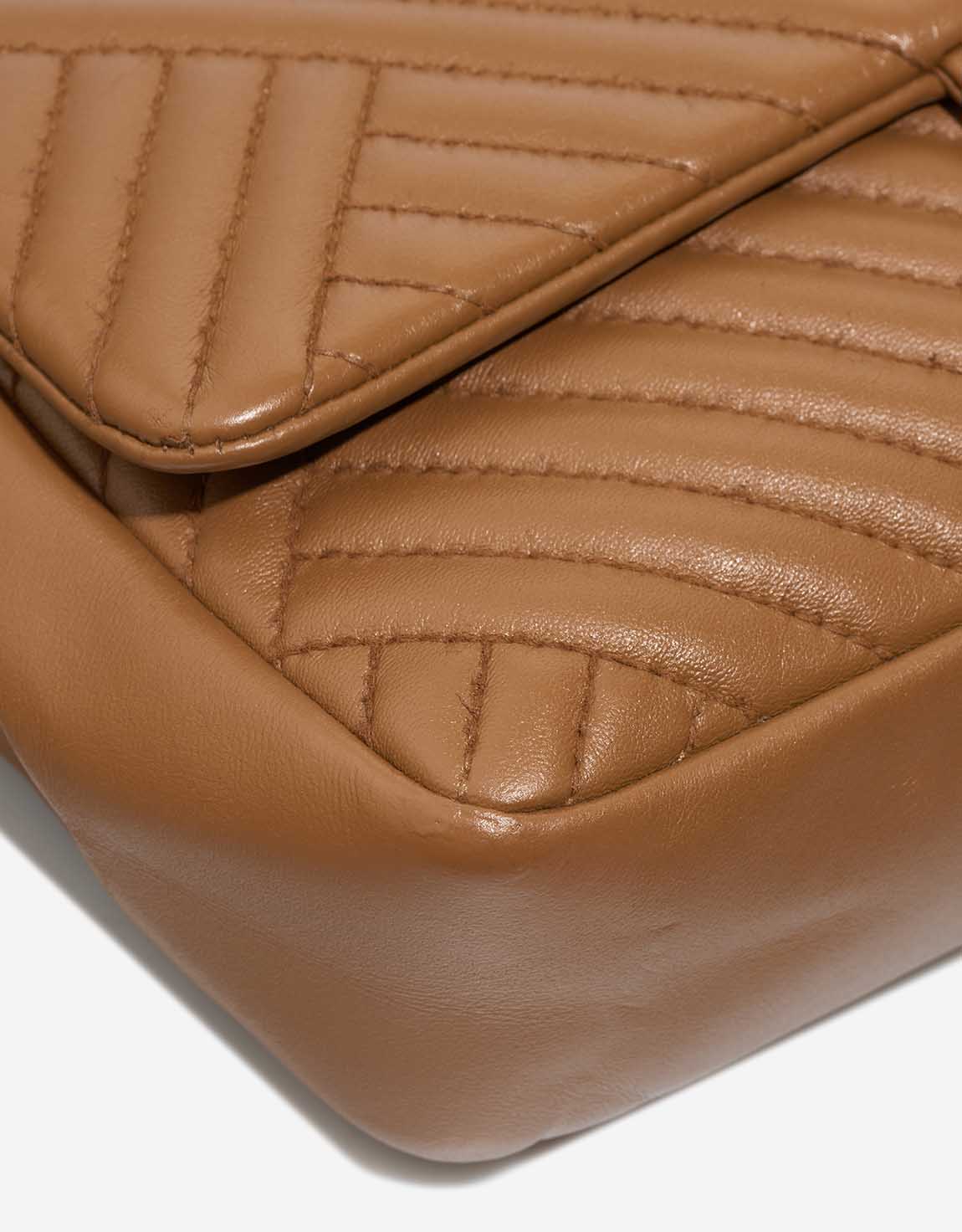 The hardware, chain and clasp show signs of wear; parts of the leather have been retouched.