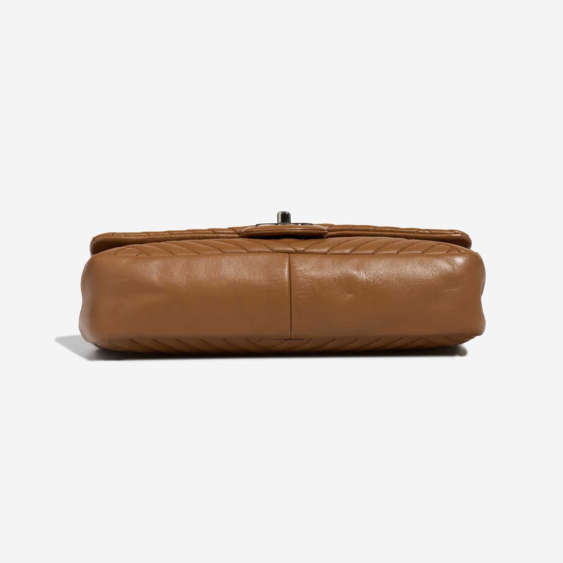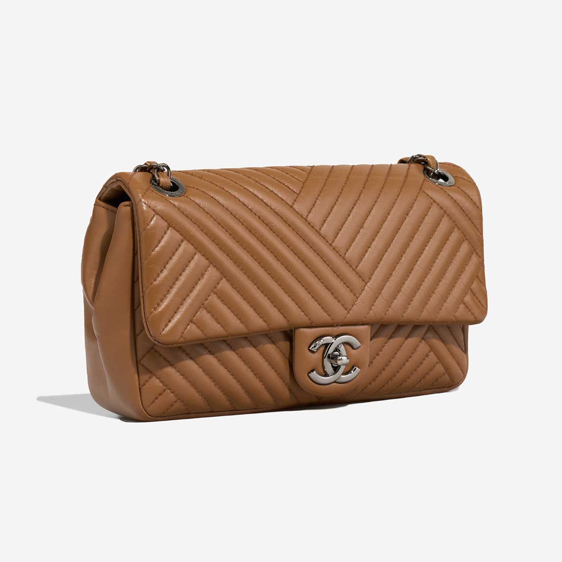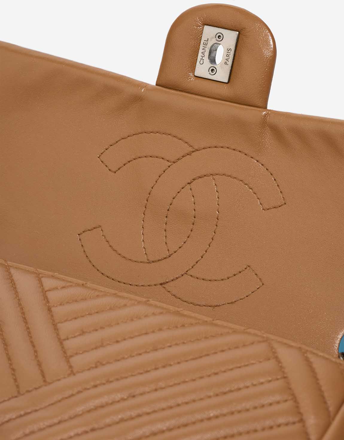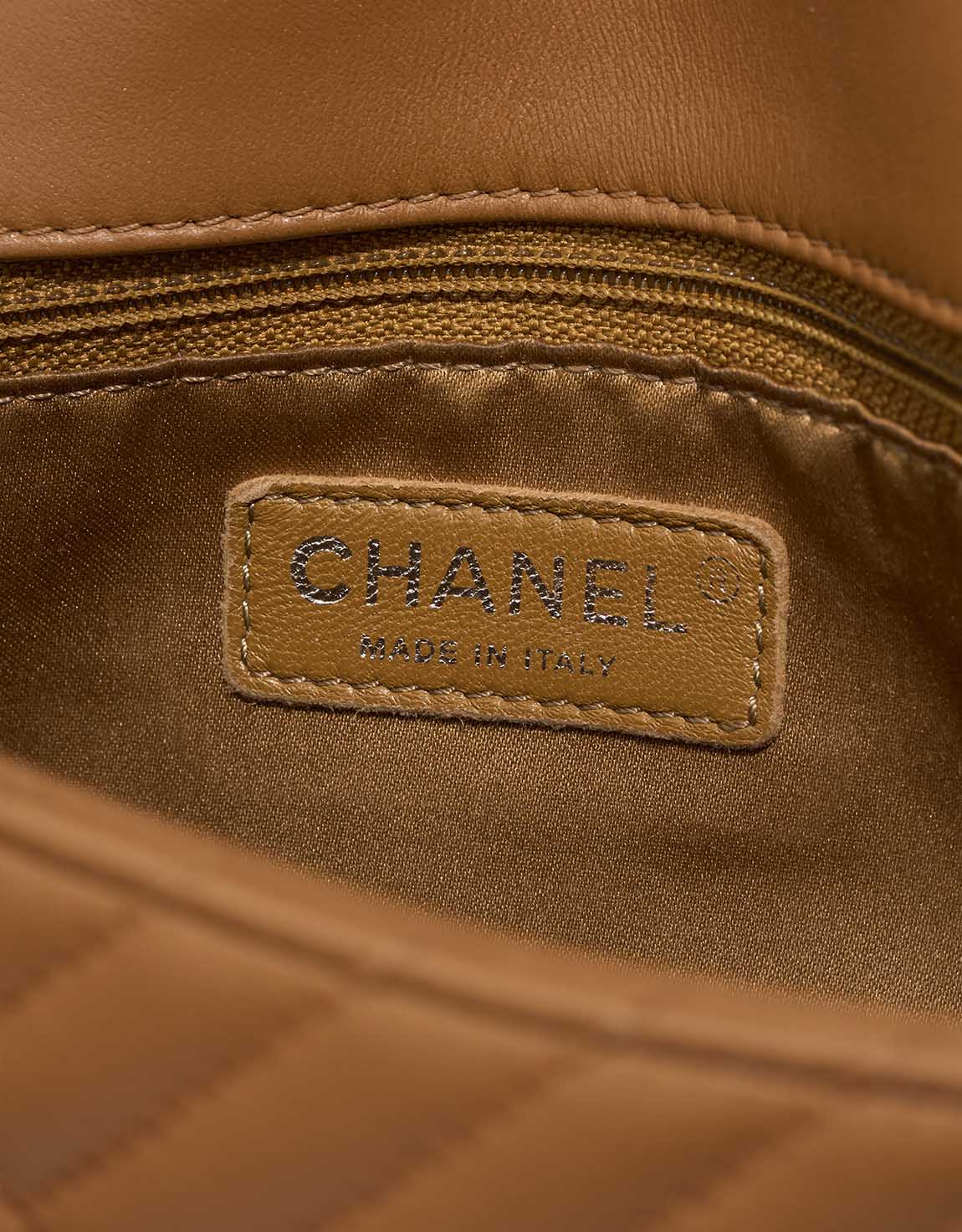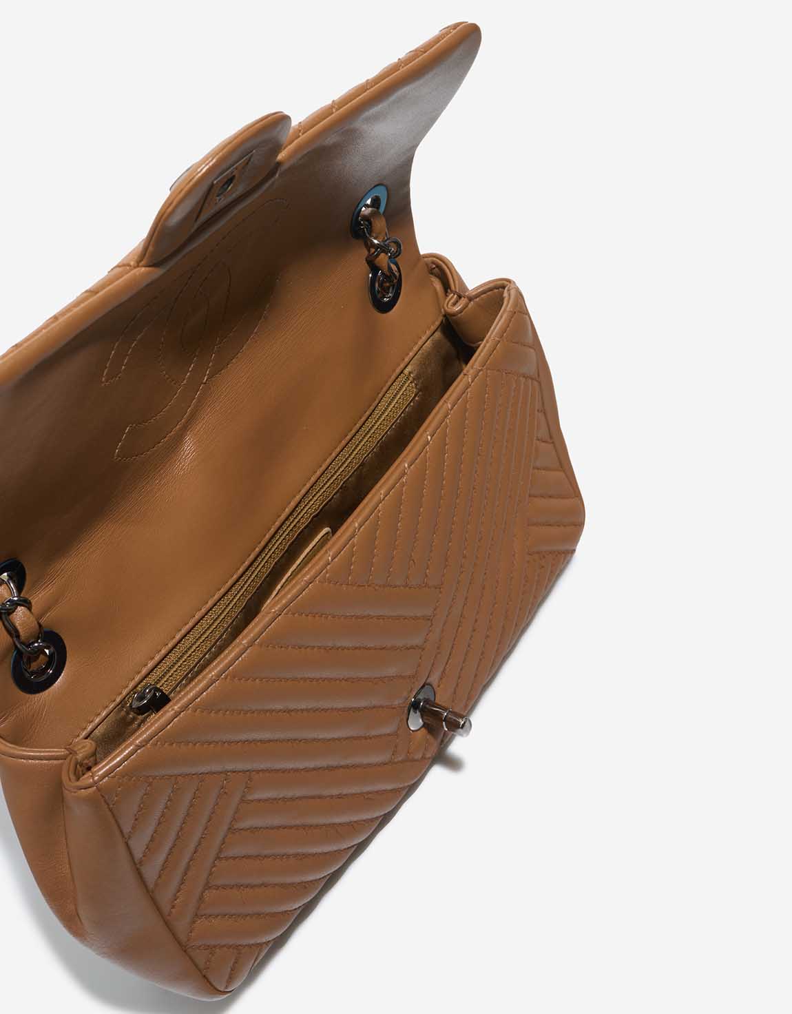 The hardware, chain and clasp show signs of wear; parts of the leather have been retouched.