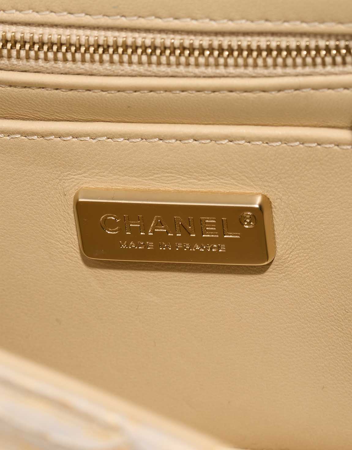 This exotic Chanel Timeless Mini Rectangular is crafted from python leather in a gradient of light grey, gold, and beige — an elegant and rare find. The brushed gold-tone hardware enhances its luxurious finish, while the compact size makes it ideal for special occasions. Produced in 2015–2016 (21 series), the bag is in like-unworn condition and partly still sealed.
