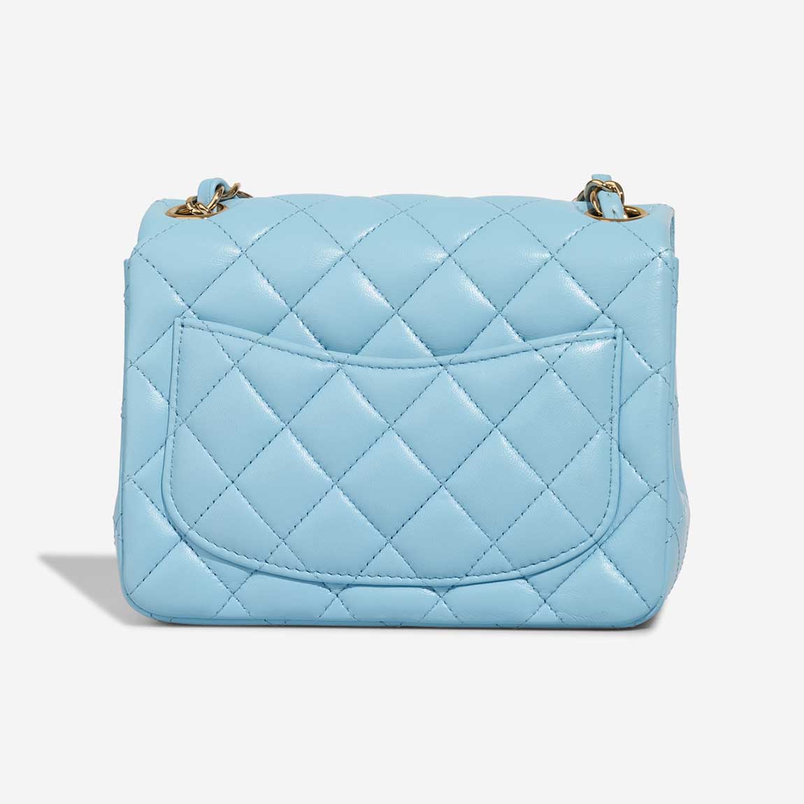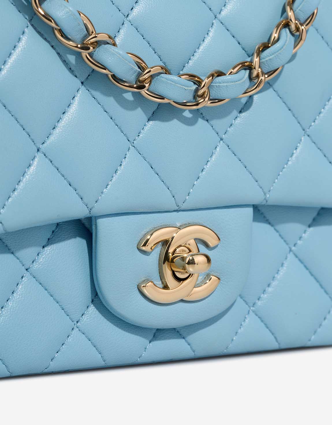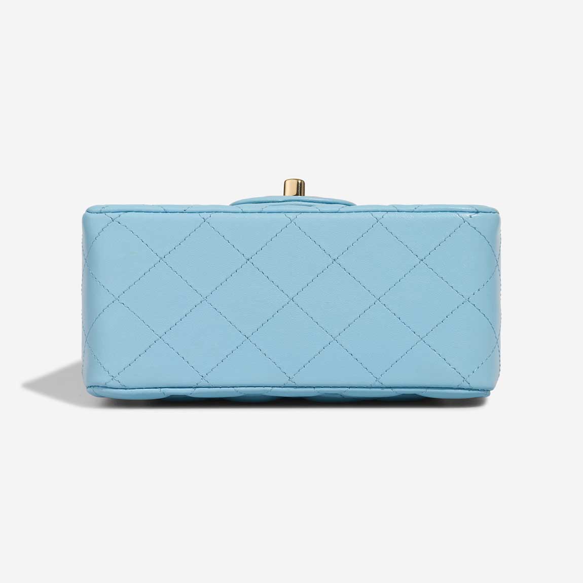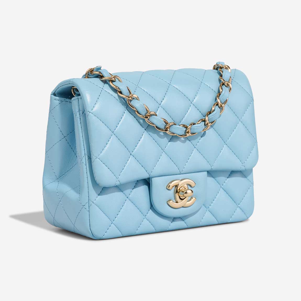 This Chanel Timeless Mini Square with top handle brings a contemporary twist to a house classic. Crafted in blue lambskin with light gold hardware, it balances playful elegance with everyday function. The bag arrives in like-unworn condition.