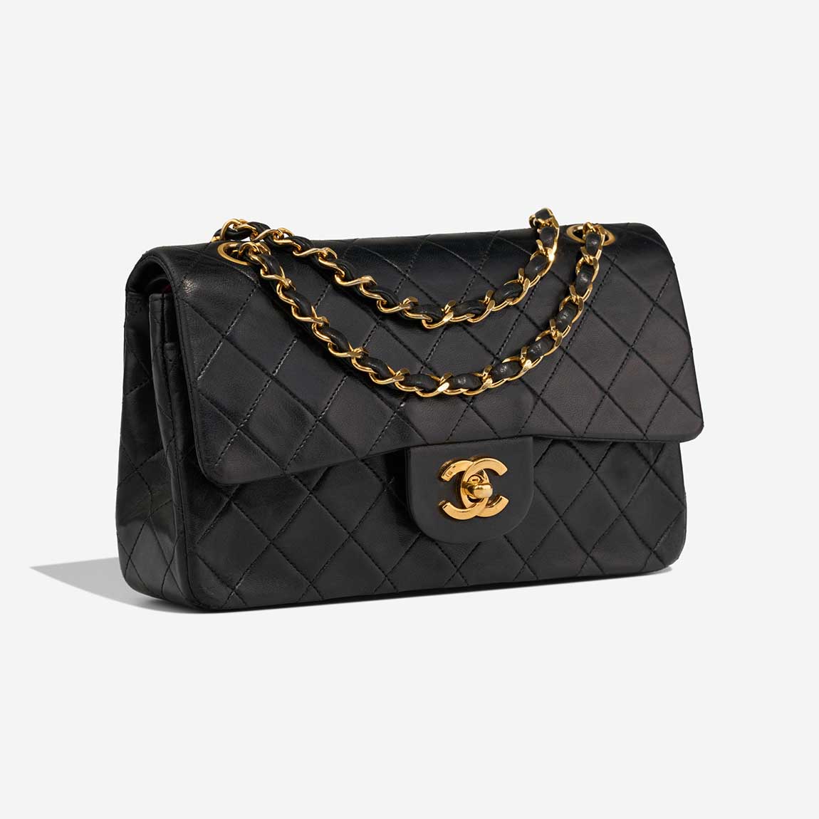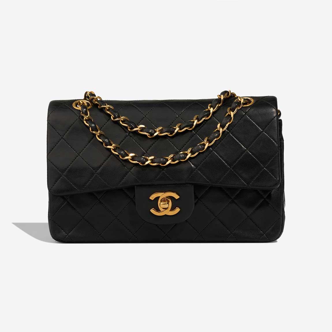 An enduring icon of the House of Chanel, this Timeless Small is crafted from supple black lambskin and finished with gold-plated hardware. Its elegant proportions make it ideal for refined daywear and evening occasions alike. Produced between 1989 and 1991, this vintage piece carries the unmistakable charm of early Chanel craftsmanship. The bag comes with traces of its former life, adding character to the bag.