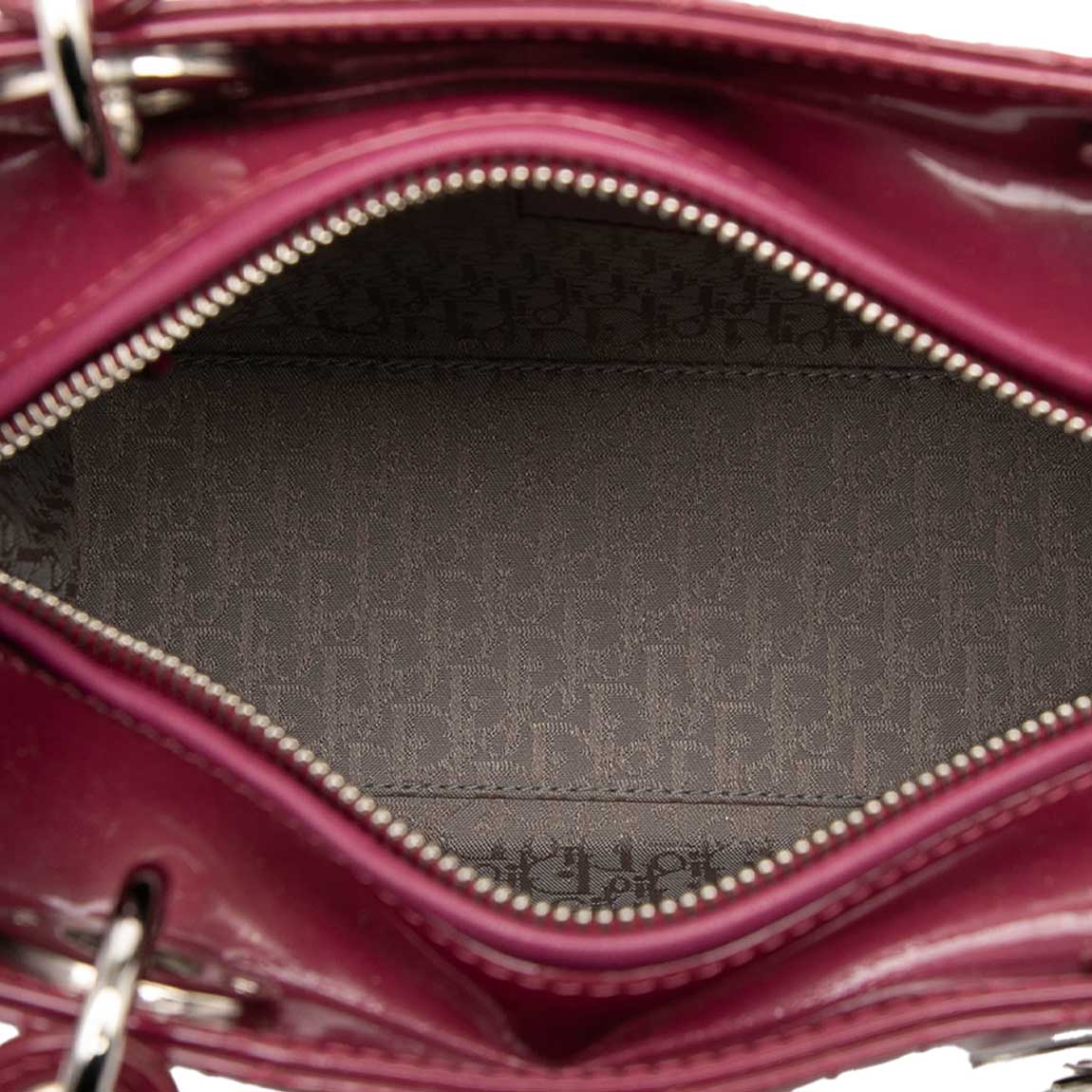 This Dior Lady Medium in glossy red patent leather makes a bold, sculptural statement. Paired with silver-tone hardware, it adds instant polish to both day and evening wear. Dating from 2012, it arrives in excellent pre-loved condition with light wear and character.