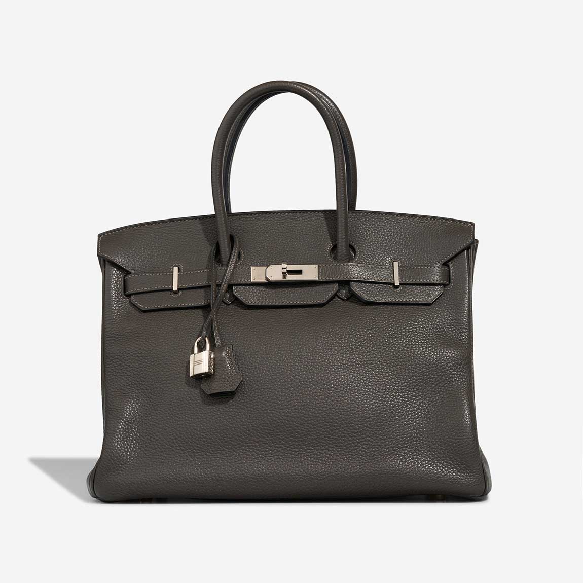 In timeless Plomb, this Hermès Birkin 35 is crafted from Clémence leather — known for its supple texture and casual slouch. The palladium hardware lends a cool contrast. Crafted in 2011 (“O” stamp), this Birkin bag arrives in very good pre-loved condition.