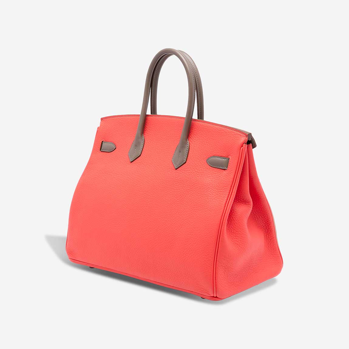 This Hermès Birkin 35 makes a bold impression with a tricolour palette of Rose Jaipur, Étoupe and Argile. Crafted in a mix of Clémence and Swift leathers and finished with palladium hardware, it reflects the house’s exceptional craftsmanship. Created in 2013 (“Q” stamp), the bag arrives in excellent pre-loved condition.