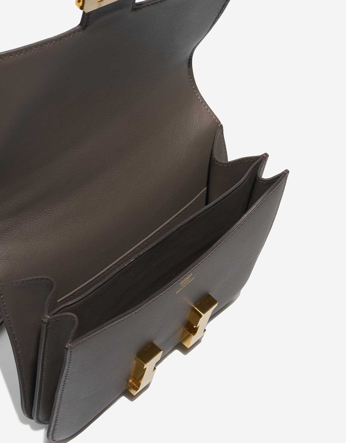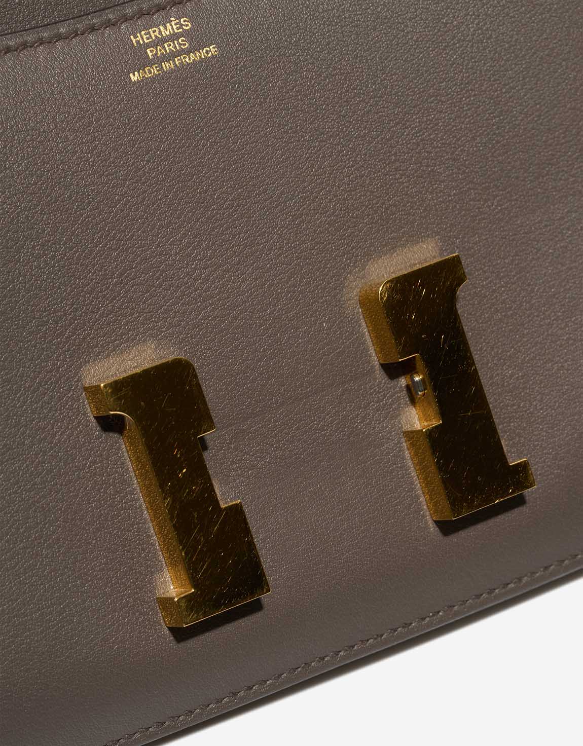 General signs of wear on the leather, scratches on hardware, faint scratches and pressure marks under the flap.
