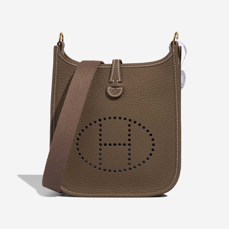Crafted from Taurillon Clémence leather in Étoupe — one of Hermès’ most beloved neutrals — this Evelyne 16 combines everyday practicality with polished charm. The compact silhouette features the signature perforated "H" and a detachable canvas strap for hands-free ease. Finished with gold-plated hardware and handcrafted in 2025 ("K" stamp), this piece is in flawless, unworn condition
