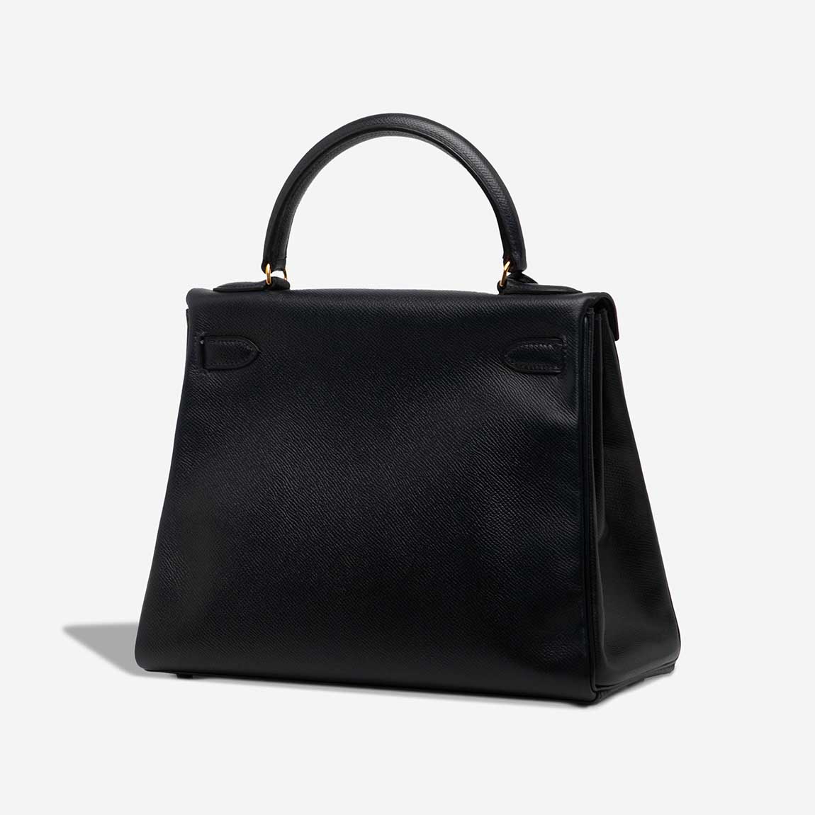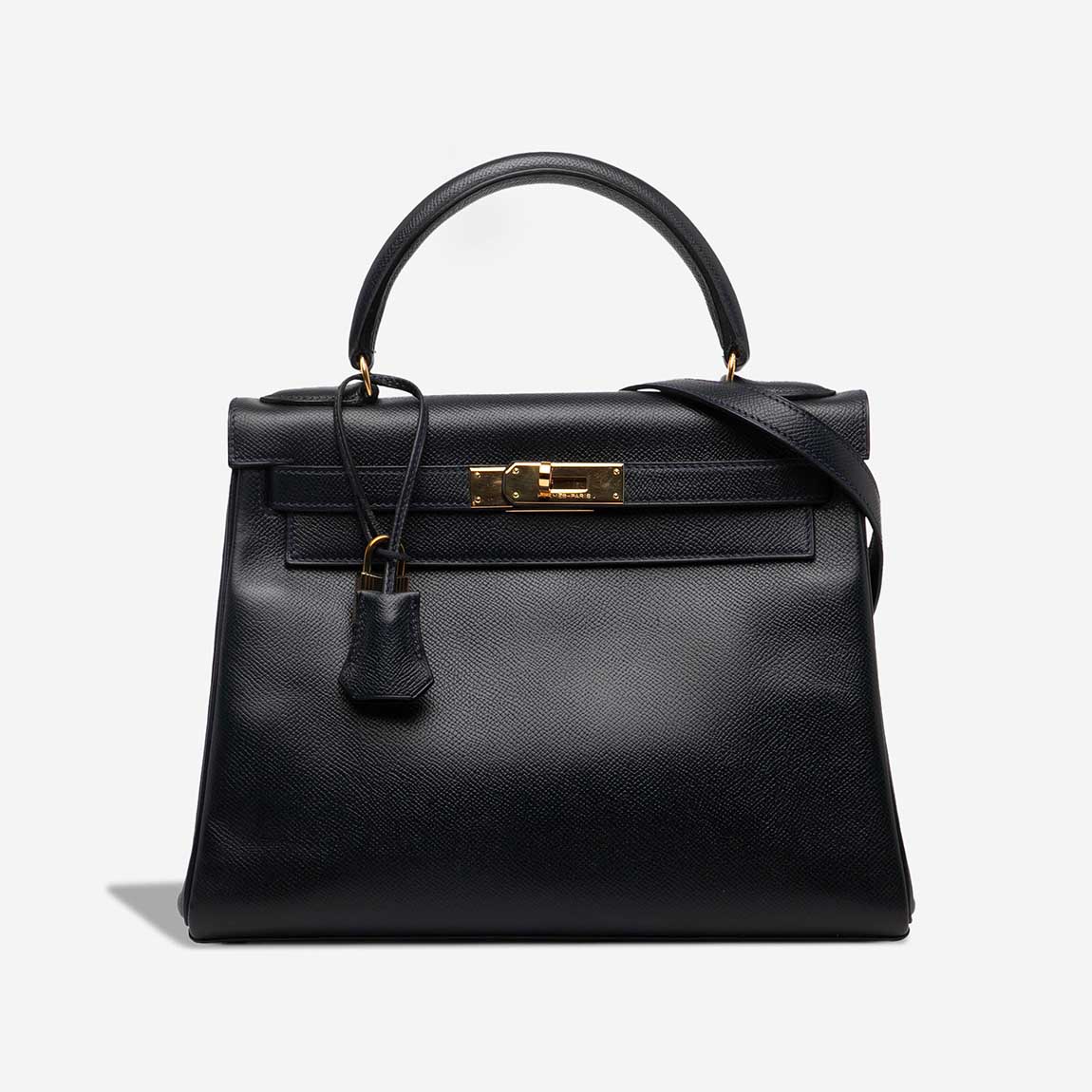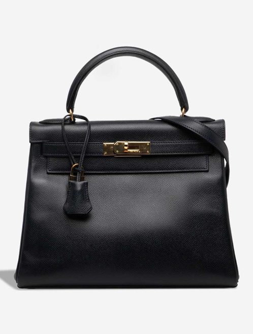 A vintage Hermès treasure, this Kelly 28 was crafted in 1990 (“T” stamp) from Courchevel leather — a predecessor of Epsom known for its fine grain and elegant structure. Presented in timeless black with gold-plated hardware, the bag features Hermès’ hand-stitched saddle construction and a Retourne silhouette. A true investment piece, it arrives in very good pre-loved condition.