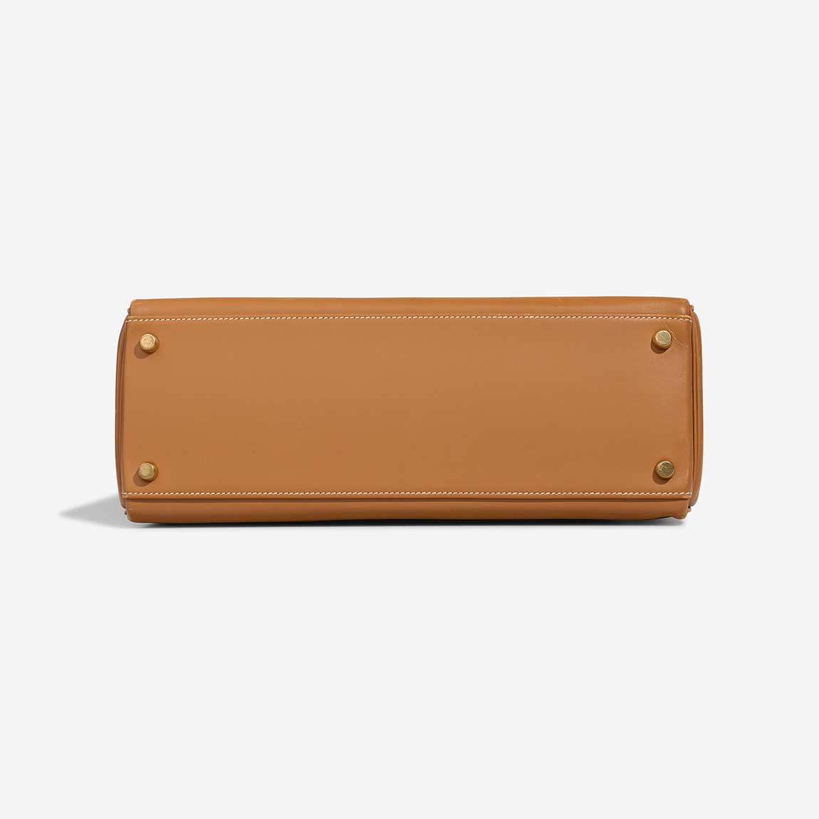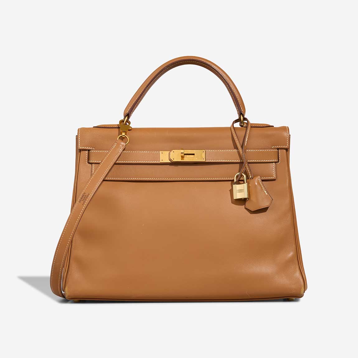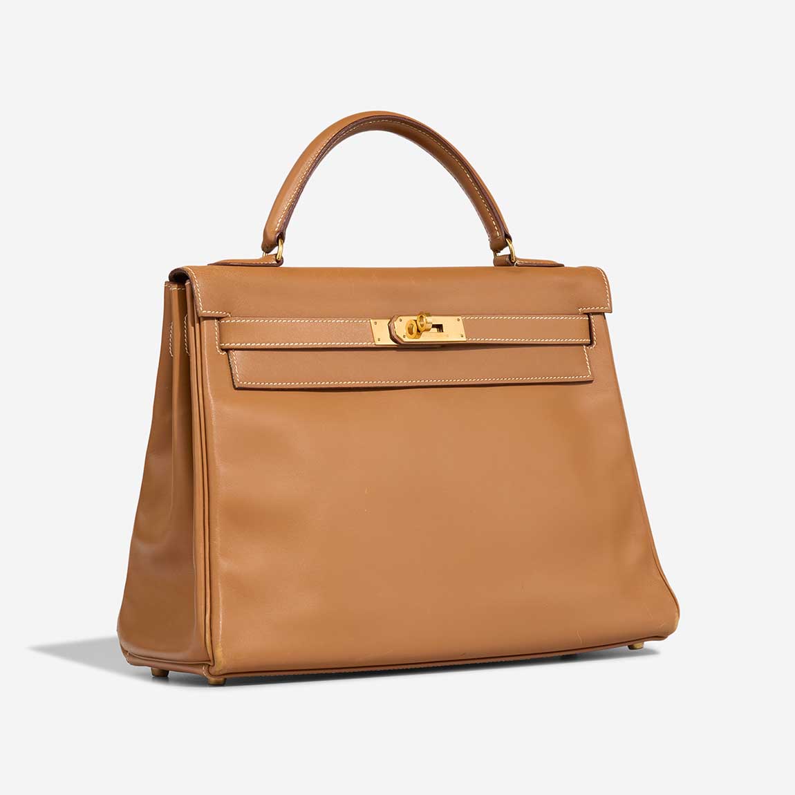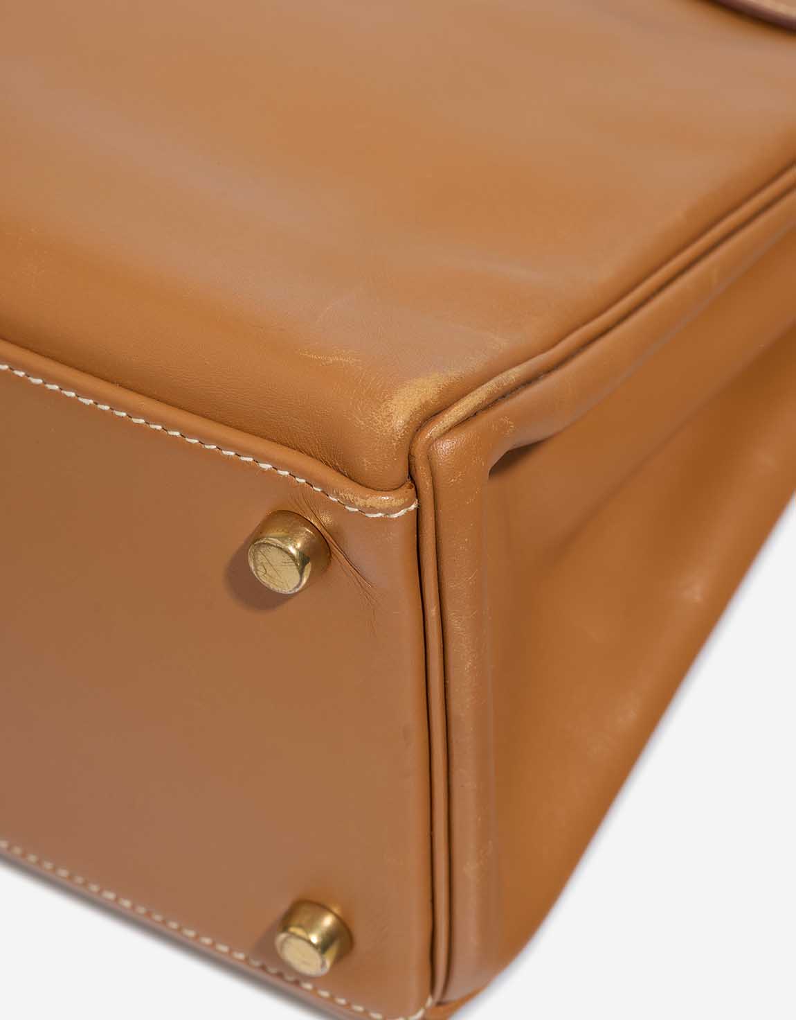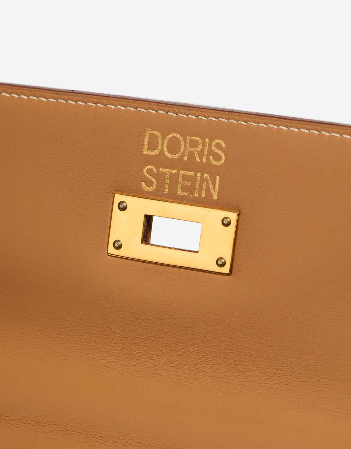 Signs of wear in the corners, scratches on the hardware, stains and scratches on the leather, branded name stamped under the flap.