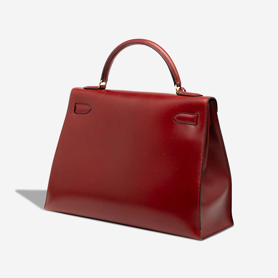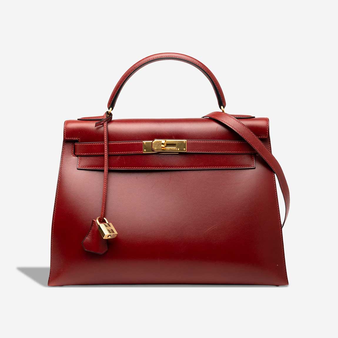 Scratched hardware, visible pressure marks and scratches on the leather, zip is tarnished and scratched.