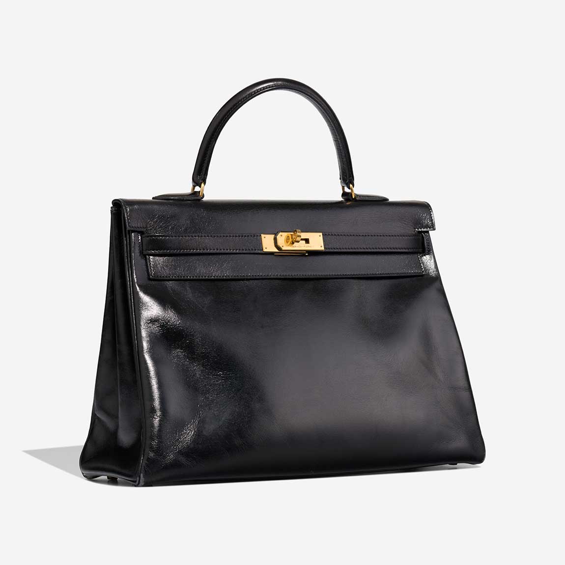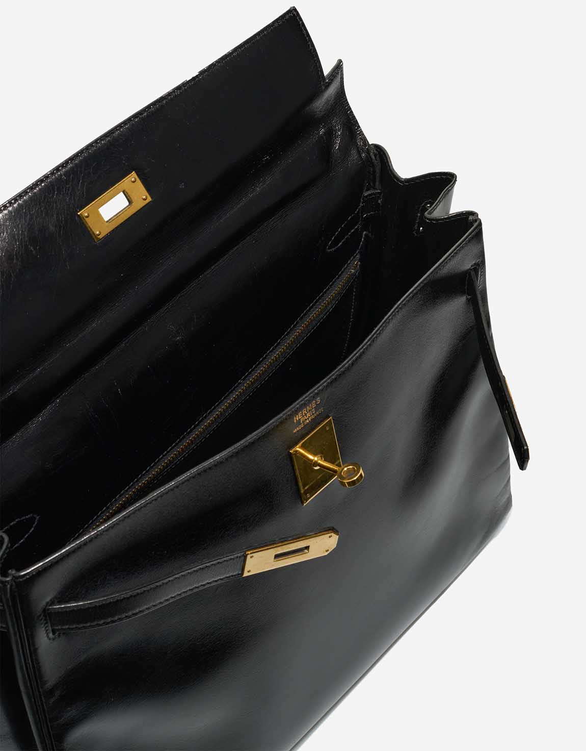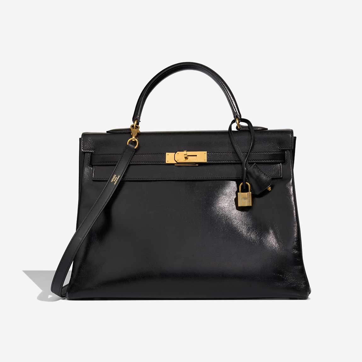 A true vintage icon, this Hermès Kelly 35 was crafted in 1989 (“S” stamp) from smooth Box leather in Black — a heritage material known for its polished sheen. Gold-plated hardware and a structured silhouette elevate its timeless appeal. The bag arrives in good pre-loved condition.