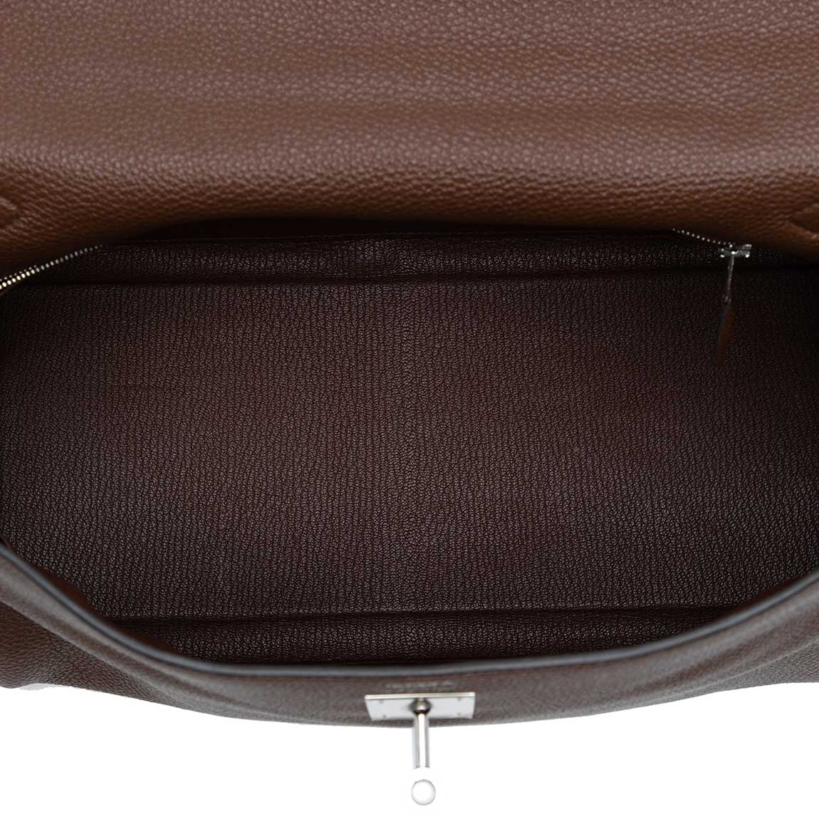 Crafted in 2013 (“Q” stamp), this Hermès Kelly 35 comes in rich Chocolat Togo leather — a structured yet supple option for everyday elegance. The Retourne silhouette adds softness, while palladium hardware gives a cool-toned edge. The bag arrives in very good pre-loved condition.