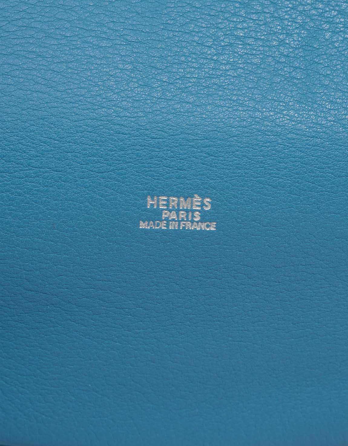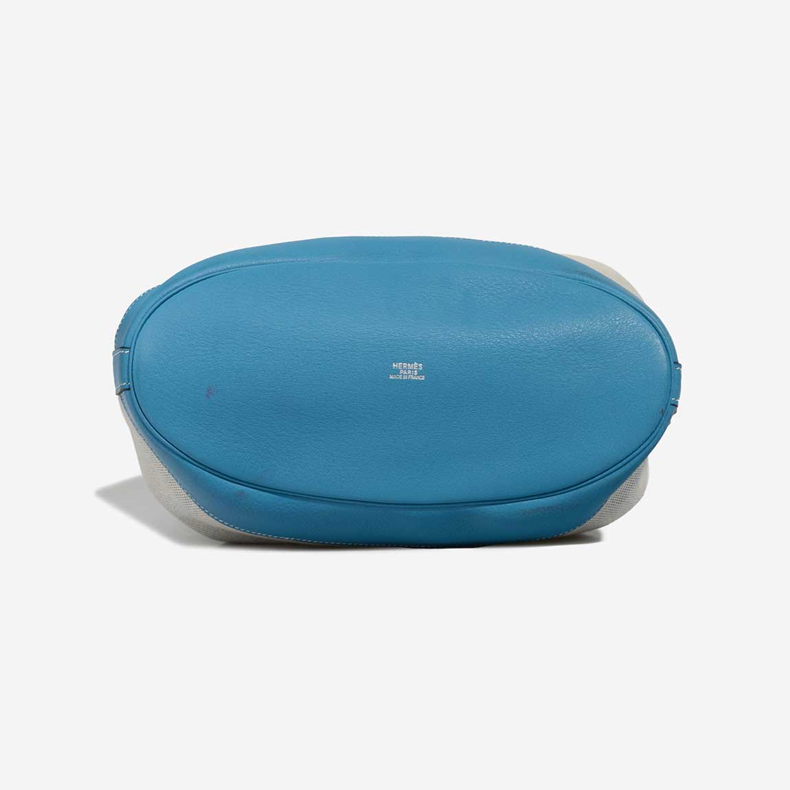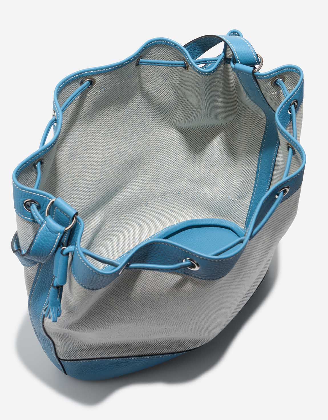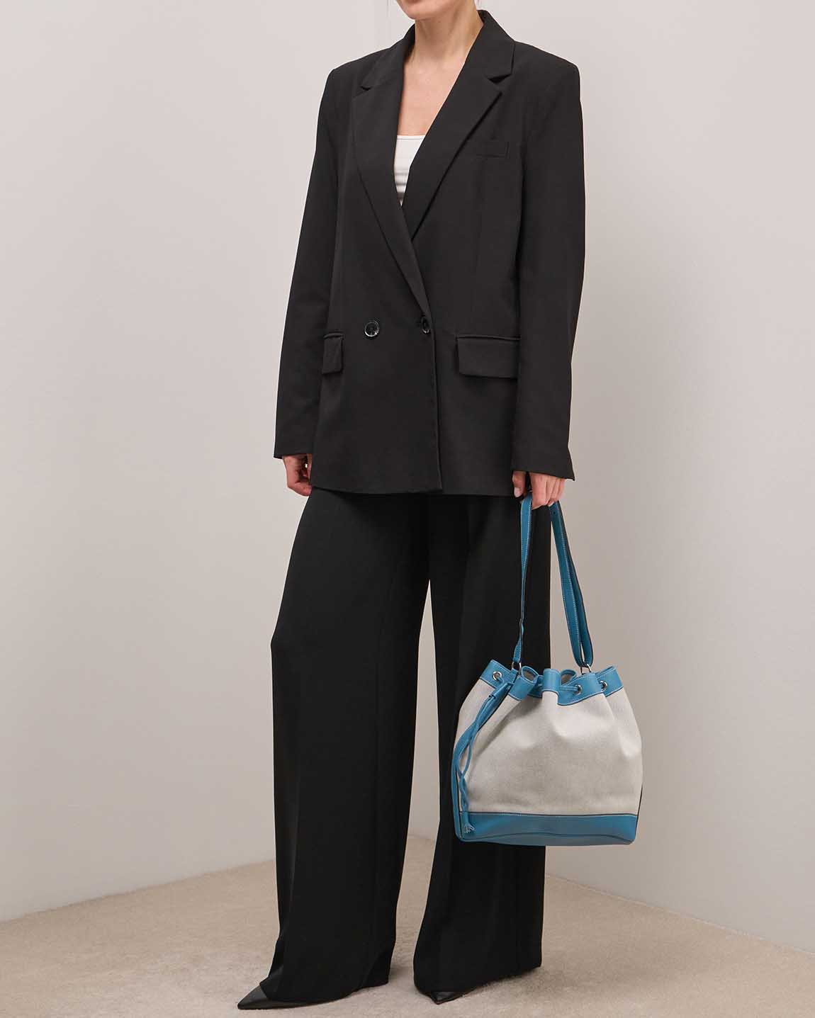 This vintage Hermès Market GM tote is crafted in Togo leather and Toile canvas, combining Bleu Jean and Écru shades with pale gold hardware. Spacious and easygoing, it suits a relaxed yet elevated lifestyle. Made in 1999 (“C” stamp), it is in very good pre-loved condition.