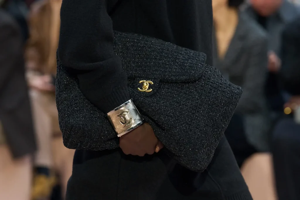 This season, handbags shimmer with gilded details. Designers have embraced hardware as decoration, showcasing bold clasps, sculptural chains, and metallic emblems that feel more like jewelry than utility. From Chloé’s chain-and-charm mixes to Chanel’s iconic gold-strap updates, the runways confirmed that gold is the finishing touch elevating every style.